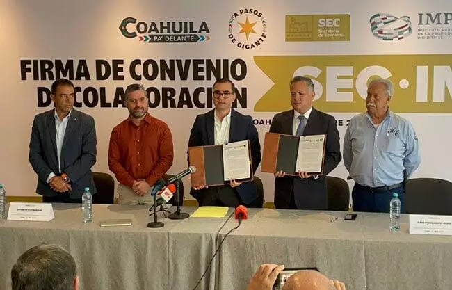 Saltillo, Coahuila.– La Secretaría de Economía de Coahuila firmó un convenio con el Instituto Mexicano de Propiedad Intelectual, para entre otros beneficios, otorgar un 90 por ciento de descuento a emprendedores, grupos poblacionales prioritarios y pequeños negocios, en el registro de marcas, avisos y nombres comerciales.