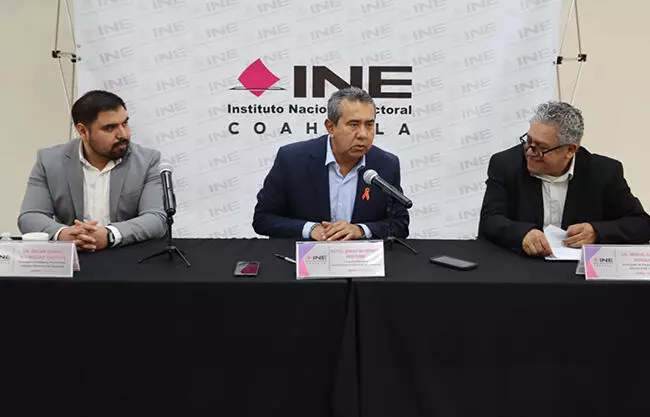 En la rueda de prensa que se ofreció en la Junta Local, estuvieron presentes, Miguel Castillo Morales, vocal ejecutivo del INE en Coahuila, y Óscar Rodríguez Fuentes, consejero presidente provisional del Instituto Electoral de Coahuila.