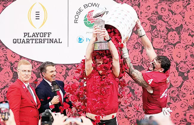 Mendoza pasó para 192 yardas en su primer juego desde que ganó el primer Trofeo Heisman de su escuela, pero los Hoosiers (14-0, sembrado No. 1 del CFP) ganaron el Rose Bowl por primera vez en la historia de la escuela al dominar a los Crimson Tide (11-4, sembrado No. 9 del CFP) en la línea de golpeo.