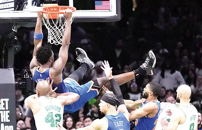 Boston.- Jalen Brunson y OG Anunoby anotaron cada uno 29 puntos antes de que Mikal Bridges robara el balón a Jaylen Brown con un segundo restante en el tiempo extra y los New York Knicks superaron 108-105 anoche a los Boston Celtics en el primer duelo de la serie de semifinales de la Conferencia Este.