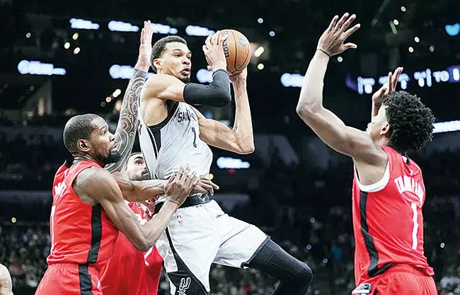 Harrison Barnes anotó 24 puntos, Julian Champagnie y Victor Wembanyama aportaron 22 cada uno y los San Antonio Spurs vencieron a los Houston Rockets 121-110