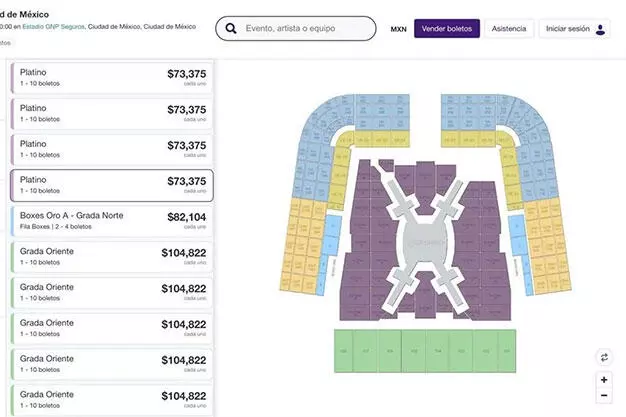 En zonas mejor posicionadas, los precios se disparan hasta alcanzar cerca de 19 mil 700 pesos, mientras que las localidades platino llegan a publicarse en casi 80 mil pesos y en las zonas de gradas han sido ofertadas en más de 130 mil pesos.