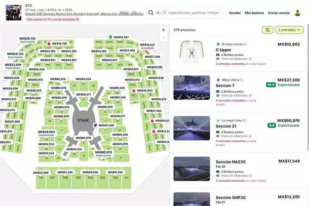 Sin embargo, mientras miles de fans intentaban asegurar entradas a través de Ticketmaster, en sitios como StubHub ya se ofrecen boletos desde 11 mil 700 pesos en zonas de visibilidad media, con incrementos progresivos que dependen de la ubicación.