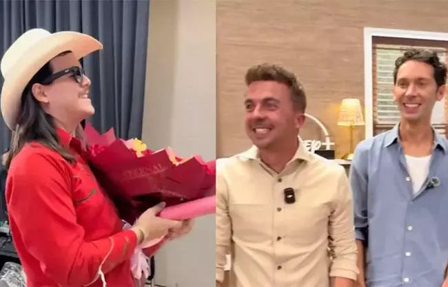Lo cierto es que inesperadamente apareció El Patrón con un enorme ramo de flores para el elenco de los actores, que lucían completamente impactados por lo que estaba pasando, parecían no entender nada.