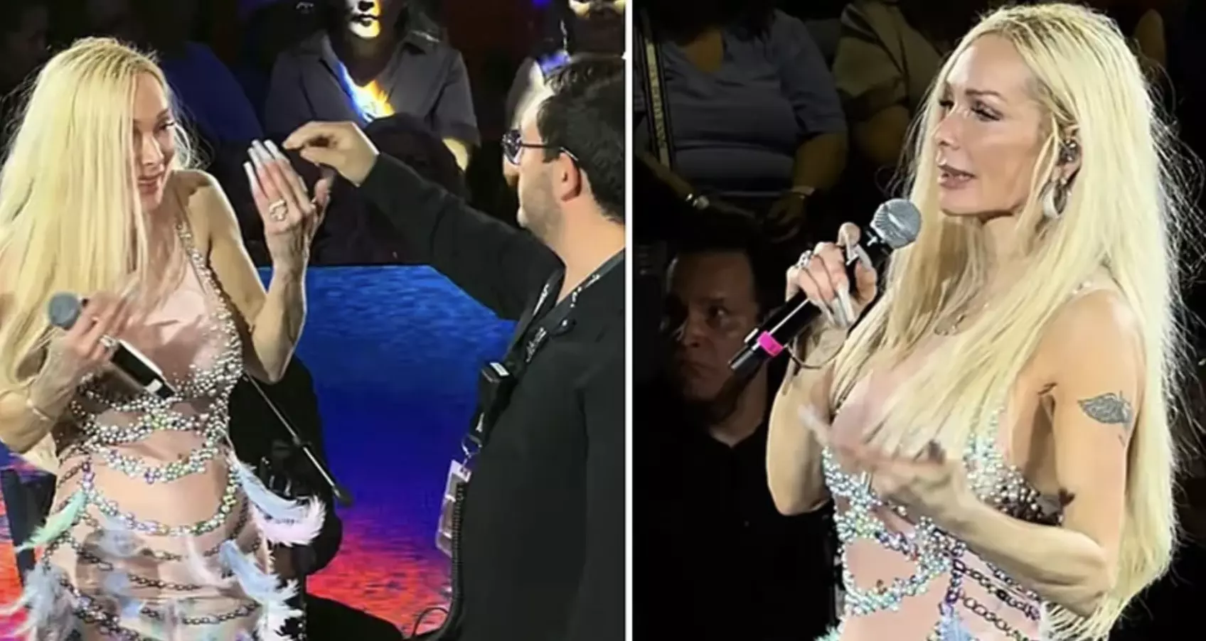 En redes sociales circulan varios videos del concierto que la intérprete de baladas ofreció en el Palenque de Mexicali. En estos se puede ver que la artista se quejó en varias ocasiones por supuestos problemas con el apuntados y, aunque intentó seguir con la presentación, terminó abandonando el escenario por aparente falta de tiempo.