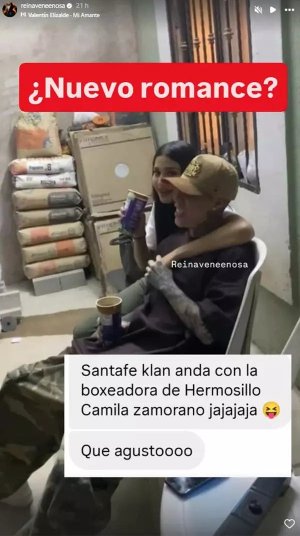 La foto le habría llegado a Reina Venenosa a través de un mensaje en sus redes sociales por medio de una seguidora, quien le escribió: “Santa Fe Klan anda con la boxeadora de Hermosillo, Camila Zamorano“.