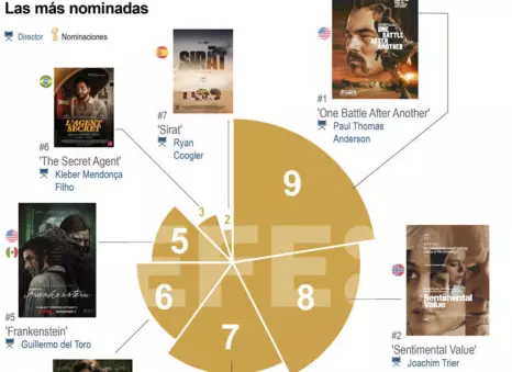 ‘One Battle After Another’, de Paul Thomas Anderson, encabeza con nueve nominaciones los Globos de Oro en cine, mientras que en televisión domina ‘The White Lotus’ con seis. La edición número 83 de los premios será el 11 de enero en Los Ángeles (EE.UU.).