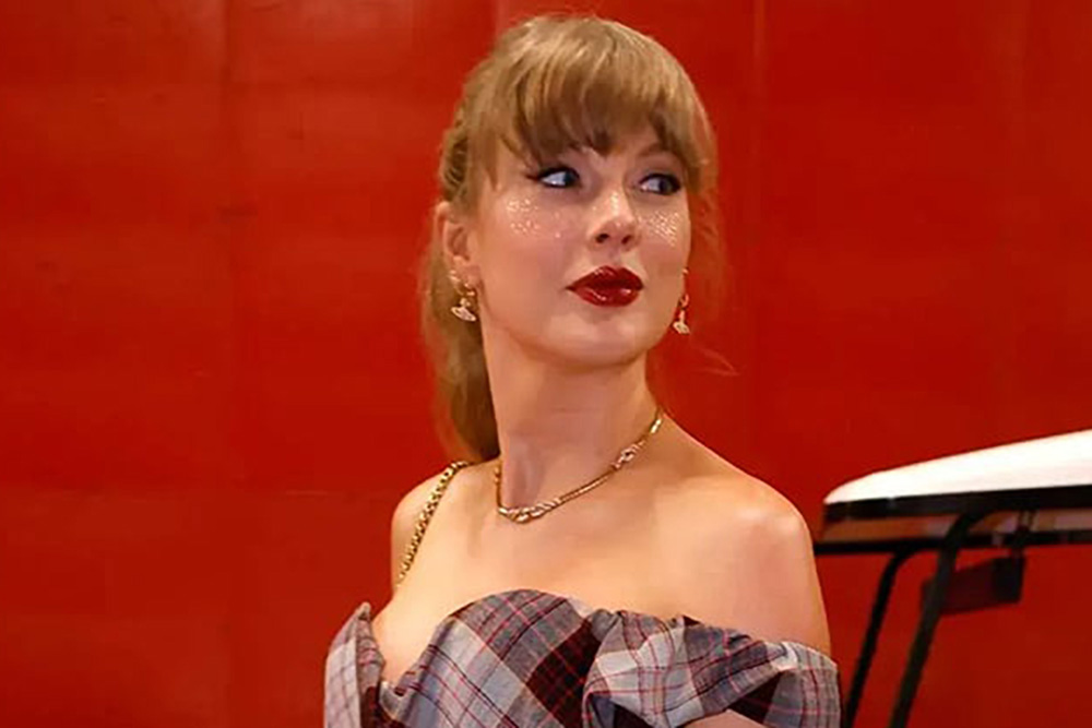 La imagen la tiene a ella en un primer plano: pelo recogido bien prolijo, delineado al estilo cat eye, labios rojos y la tendencia en maquillaje que está dando la vuelta al mundo entero. Taylor Swift se vuelve protagonista, una vez más, de la mano de un estilismo de belleza que se las trae y que ya es furor en las redes sociales.