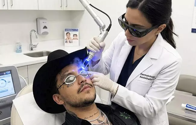 Ahora, ya casado con Ángela Aguilar, continúa con este largo proceso. El procedimiento para retirar tatuajes faciales utiliza tecnología fotoacústica mediante láseres de picosegundos o Q-Switched, que emiten ráfagas de luz de alta intensidad para fragmentar la tinta en partículas diminutas sin dañar la piel cercana. Posteriormente, el sistema linfático del cuerpo elimina gradualmente esos residuos.