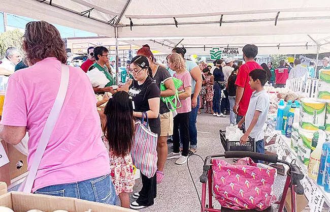 Frontera, Coah.- Para apoyar la economía familiar ante el incremento en los precios de productos básicos, la mañana de ayer se llevó a cabo el programa Mercadito Mejora en la colonia Guadalupe Borja, donde decenas de familias acudieron para aprovechar los productos a bajo costo que se estaban ofreciendo.