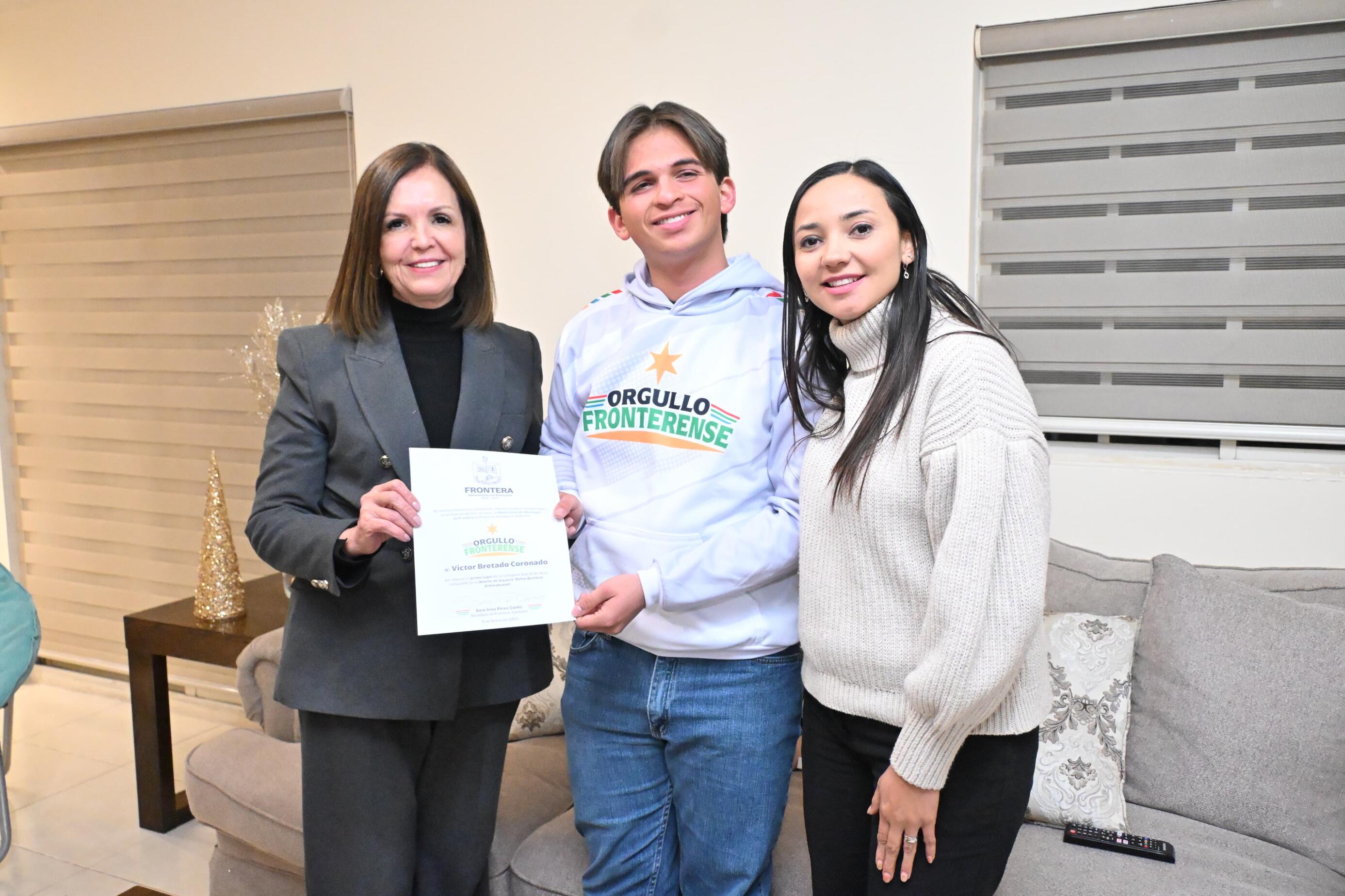 “Víctor, tu triunfo es un ejemplo de perseverancia y dedicación, nos dejas muy en claro que con dedicación y a pasos de gigante se alcanzan las metas y los objetivos. Nos llenas de orgullo y motivación para seguir trabajando por un Frontera con orden y rumbo”, declaró la alcaldesa.