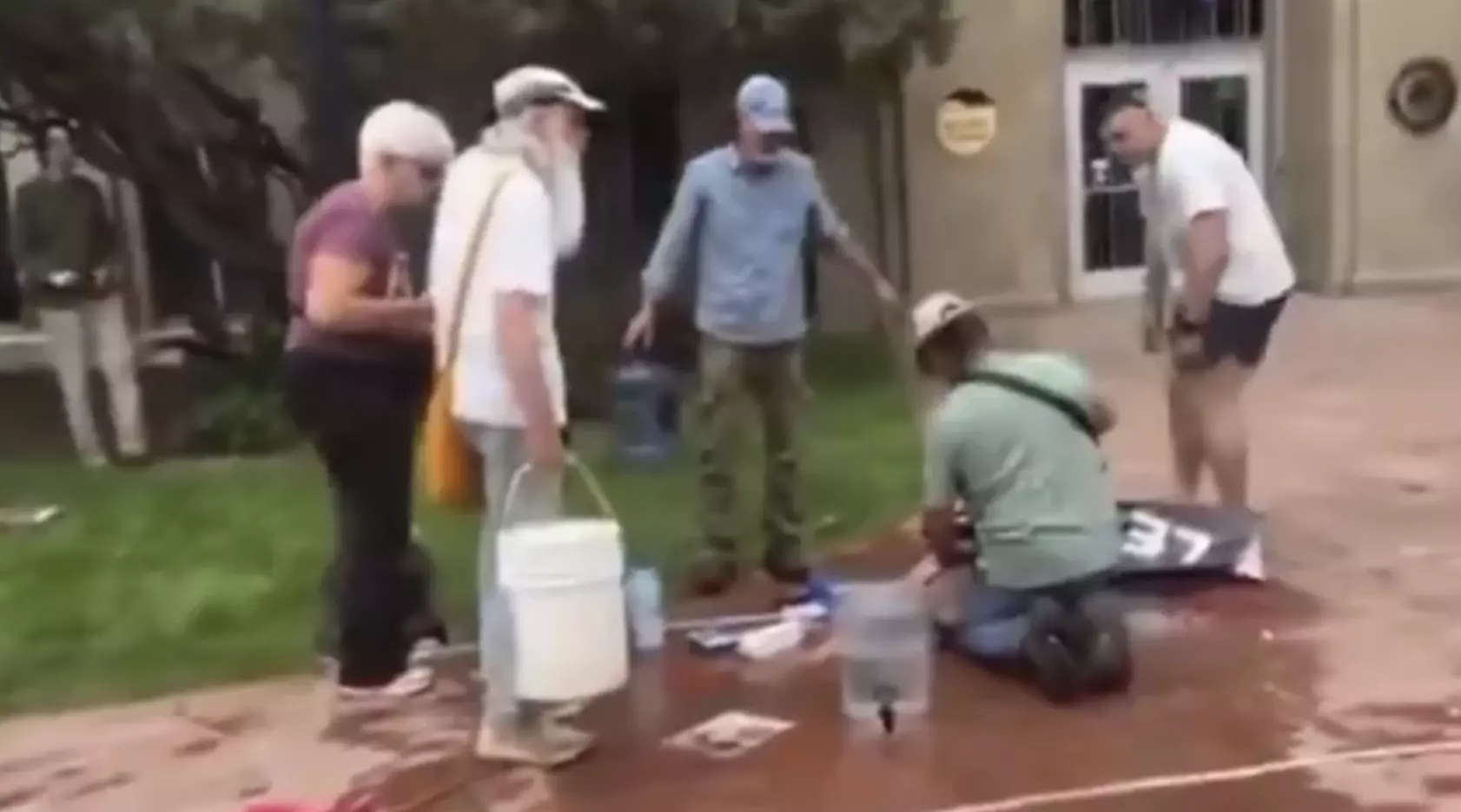 En otras imágenes viralizadas captaron el momento en el que se registra una columna de humo en medio de una plaza arbolada y a un grupo de personas corriendo.