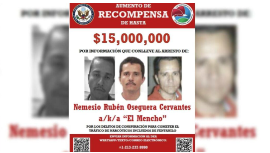 Today, @StateDept announces a reward increase of up to $15M for information leading to the arrest and/or conviction of CJNG leader Nemesio Rubén Oseguera Cervantes, a/k/a “El Mencho.” Information regarding El Mencho should be reported to the DEA. https://t.co/6eU7cUoLEI pic.twitter.com/ukNisDTUyC
