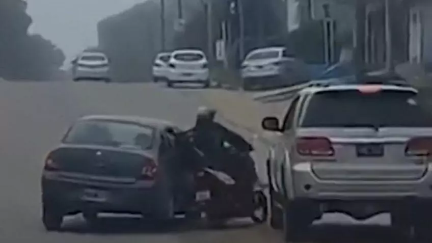 En las imágenes que circulan en redes sociales se puede ver que un automóvil y una motocicleta circulan a alta velocidad por un boulevard de la ciudad bonaerense antes mencionada y los conductores de ambas unidades se ven involucrados en una acalorada discusión, incluso, en algún momento se puede apreciar que se abre la puerta del copiloto del automóvil tipo sedán.