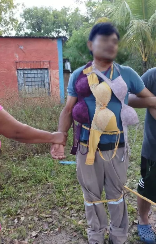 De acuerdo con medios locales, el incidente ocurrió el pasado 6 de noviembre en la comunidad La Tina, donde pobladores lo detuvieron en pleno delito en una casa de San Román; allí se le encontró llevándose sin permiso varios brasieres, mismos que llevaba colgados en el cuello.