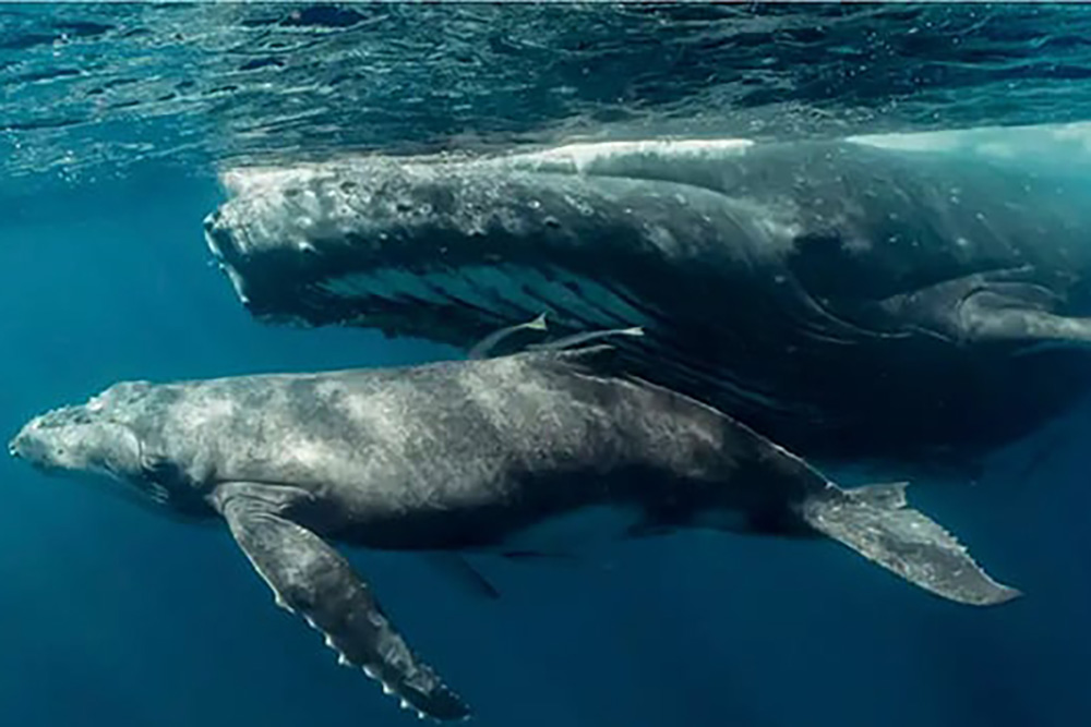 Ciudad de México.- Un ballenato se amamanta mientras nada junto a su madre y al terminar una estela de leche tiñe de blanco las aguas del Pacífico colombiano. La secuencia quedó registrada en un video extraordinario que es pieza clave para la investigación y conservación de las ballenas jorobadas.