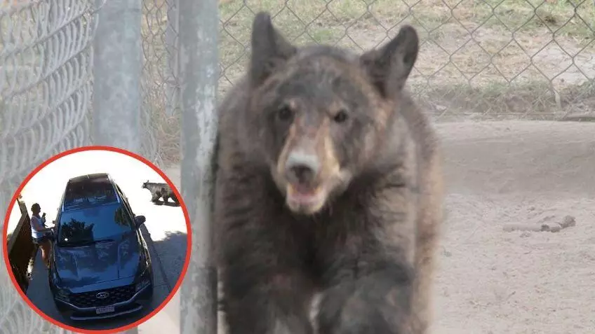 Mientras que del lado del conductor, hacia donde ella se dirigía otro osezno sale por la ventana trasera tratando de evitar el contacto humano, sorprendiéndola por completo y provocando que tierra una carrera a toda velocidad para rodear el auto.