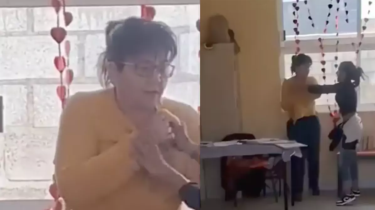 La escena de violencia quedó registrada en video. Una madre de familia llegó hasta el salón de clases y ahí confrontó y le pegó a la maestra de su hijo. La maestra fue señalada por varios niños de presuntamente encerrarlos e incluso amarrarlos a una silla.