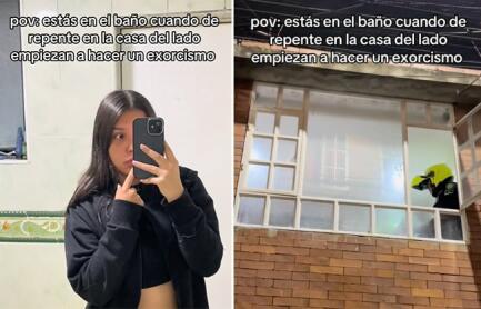 La usuaria de TikTok, Sara (@saravargassx), originaria de Colombia, compartió un video con la descripción: “Pov: estás en el baño cuando de repente en la casa de al lado empiezan a hacer un exorcismo”.