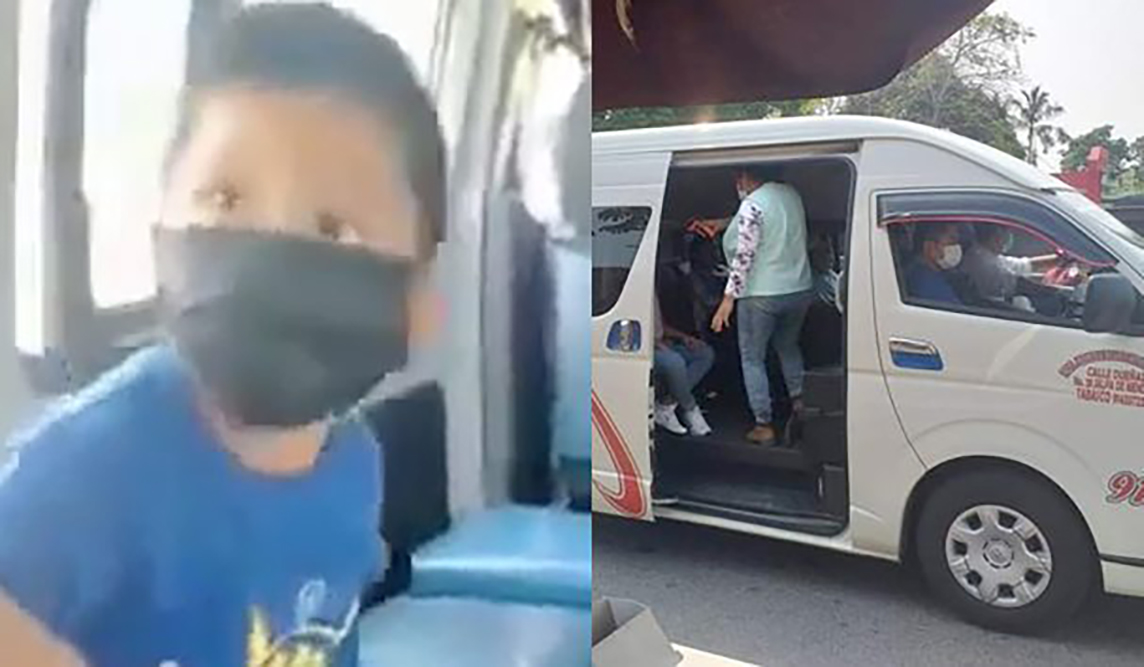 En un video que circula en redes sociales, se observa a un grupo de personas a bordo de una unidad de transporte público que, según la publicación de Facebook de Código Rojo Villahermosa, circulaba por el municipio de Paso Real de la Victoria