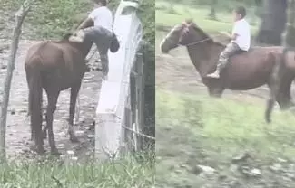 El video, que se ha hecho viral en las últimas horas, muestra a un pequeño niño subiendo de manera temeraria a un caballo sin ayuda de adultos