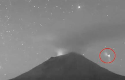 Puebla.- Las cámaras de monitoreo de Webcams de México reportaron un objeto luminoso con forma de triángulo ascendiendo sobre el volcán Popocatépetl.