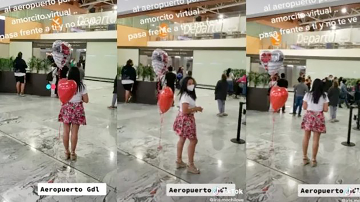 Los hechos ocurrieron en el aeropuerto de Guadalajara, la mujer llegó con globos a recibir a su novio, el cual había conocido por redes sociales, sin embargo aunque lo tuvo cerca no lo reconoció.
