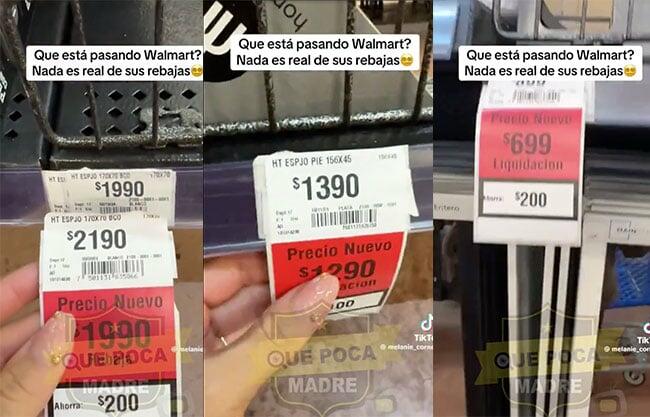 En el video, titulado “Nos están timando en Walmart”, Melanie muestra cómo al retirar etiquetas sobrepuestas en productos, se revelan precios anteriores que, en algunos casos, son más bajos que los precios etiquetados como descuento