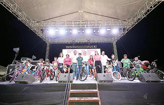 Las niñas y niños disfrutaron del festival participando en dinámicas, juegos y actividades recreativas en un ambiente de convivencia familiar. Además, se realizó una rifa de regalos, destacando la entrega de bicicletas, como parte del trabajo conjunto con el gobernador Manolo Jiménez.
