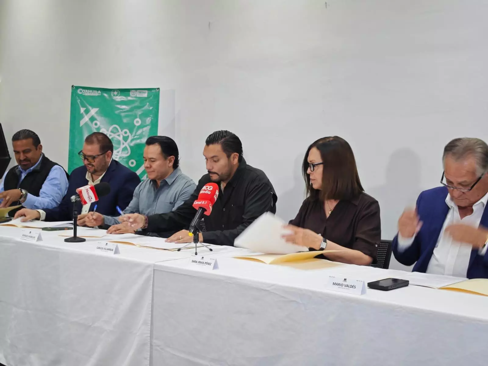 El evento, realizado en la Biblioteca Pape, contó con la presencia del alcalde de Monclova, Carlos Villarreal Pérez; la alcaldesa de Frontera, Sara Irma Pérez Cantú; la representante del municipio de Castaños, Silvia Gaytán Hernández; el subsecretario de Educación Superior, Saúl Noguera Contreras; el subsecretario de Gobierno de la Región Centro, Sergio Sisbeles Alvarado; y el director del COECYT, Mario Valdés Garza.