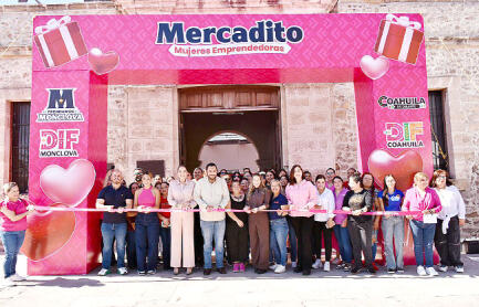 Monclova, Coah.- Con gran entusiasmo y una alta participación, dio inicio el Mercadito de San Valentín, un espacio donde mujeres emprendedoras de Monclova exhiben y comercializan sus productos. La presidenta honoraria del DIF, Mavi Sosa y el alcalde Carlos Villarreal Pérez, encabezaron la inauguración de este evento, que se desarrolla los días 8 y 9 de febrero en el Museo Coahuila y Texas.