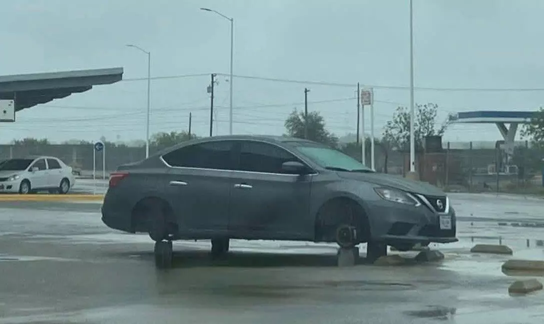 Al percatarse del daño, el afectado optó por dejar su automóvil en el lugar durante la noche y regresar a la mañana siguiente para retirar las llantas y llevarlas a reparar.