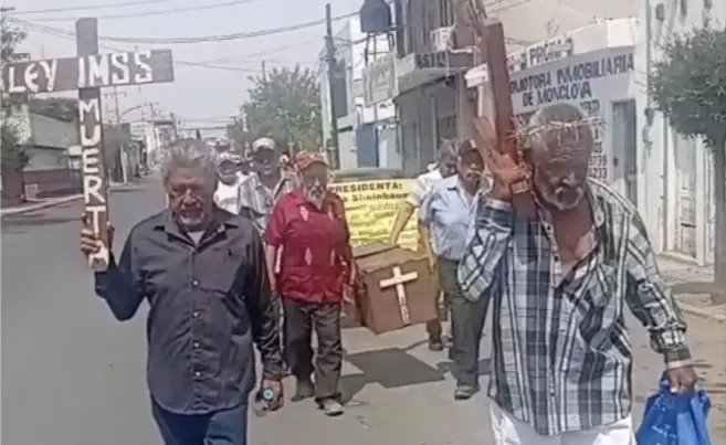Este Viernes Santo, integrantes del movimiento 'Pensión Digna' llevaron a cabo su propio viacrucis por las calles del centro de Monclova