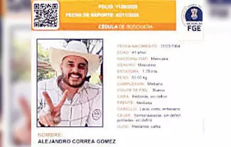 Zinapécuaro.- La Fiscalía estatal confirmó ayer que Alejandro Correa Gómez, exalcalde de Zinapécuaro, desapareció la madrugada del 2 de noviembre. Correa fue visto por última vez a las 2:00 horas en Tierras Coloradas, municipio de Hidalgo, a donde acudió a realizar una actividad social, vestido con camisa azul de cuadros, chaleco gris y sombrero beige.