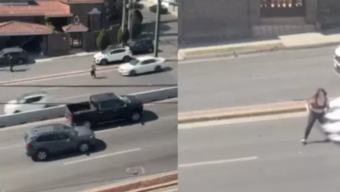 Videos muestran el momento en que una mujer corre hacia los carriles centrales