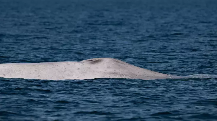 ¡Ballena azul con albinismo a la vista! El avistamiento es importante porque el animal está catalogado como ‘En Peligro’ en la Lista Roja de Especies Amenazadas y en nuestro país se encuentra bajo protección especial.