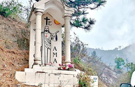 Justo en esa curva hay un claro sin barrera, junto a un altar.