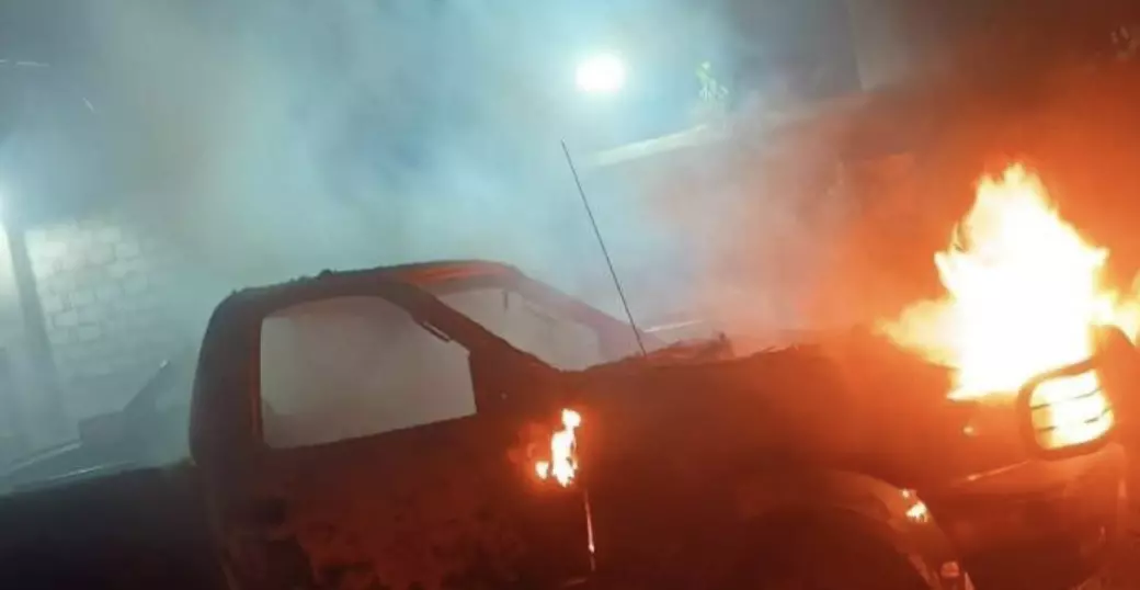 En esta segunda ubicación, los civiles armados provocaron un incendio en una casa habitación que también pertenece al exmunícipe. El fuego alcanzó y causó daños estructurales leves y la pérdida total de dos camionetas que se encontraban estacionadas en el sitio.