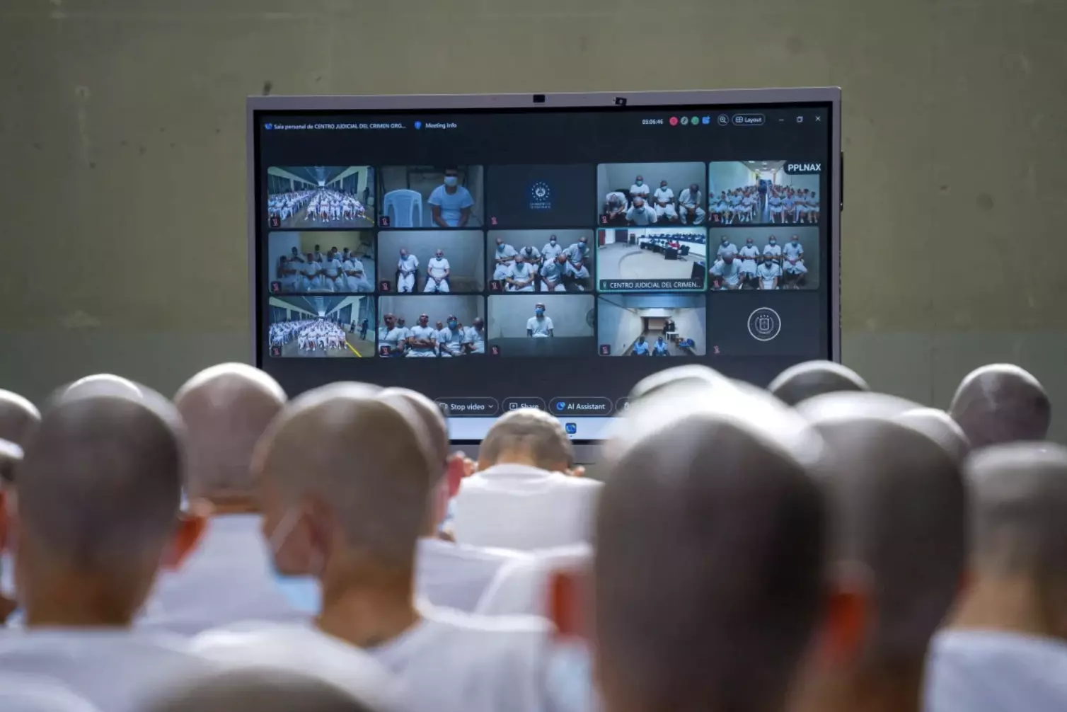 Uniformados de blanco, rapados y con mascarillas, cientos de acusados siguen el juicio por videoconferencia. De ellos, 413 están detenidos en el Centro de Confinamiento contra el Terrorismo (CECOT), una cárcel de máxima seguridad emblema del Gobierno de Bukele, y otros 73 están prófugos, pero serán juzgados en ausencia.