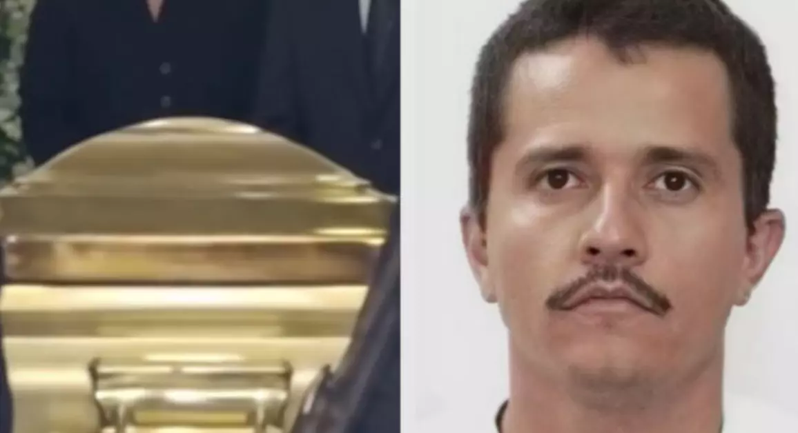 El féretro, de acabado brillante y tono dorado, llamó la atención durante el cortejo fúnebre por su apariencia ostentosa.