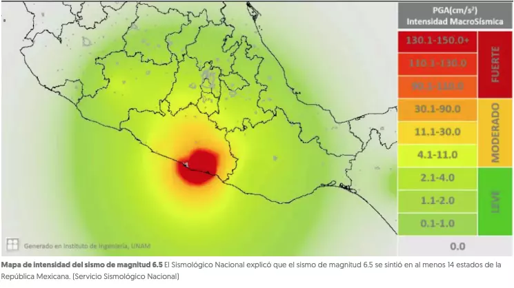 El Sismológico Nacional publicó después un análisis especial del sismo de magnitud 6.5 en el que explicó que la zona donde se sintió con más fuerza fue en la costa este de Guerrero.