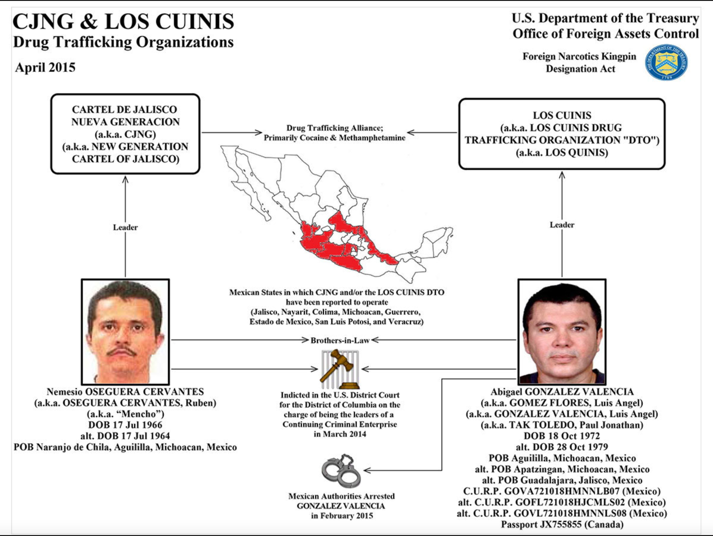“El Cuini” es cuñado de Nemesio Oseguera Cervantes porque éste estaba casado con su hermana Rosalinda González Valencia.