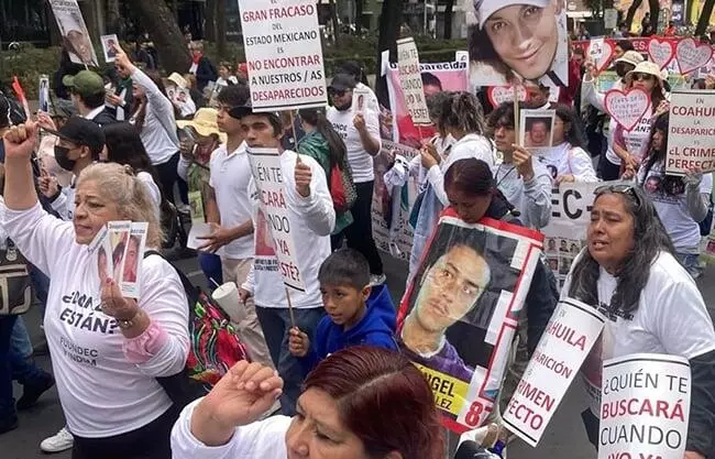 Tras marchar del Monumento de la Revolución al Ángel de la Independencia, ciudadanos de todo el País, cargando las fotos de sus familiares desaparecidos, pidieron respeto por su lucha a la Presidenta, quien ha rechazado la denuncia de la ONU, así como una limpia en la Fiscalía General de la República y castigo a los funcionarios que permiten, acusaron, que 47 nuevas personas se sumen a diario a las más de 127 mil personas desaparecidas en México.