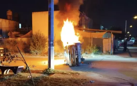 Mientras tanto, un grupo de personas volcó el automóvil involucrado y posteriormente le prendió fuego. Las llamas alcanzaron varios metros de altura, lo que obligó a otros residentes a salir de sus casas ante el temor de una explosión.
