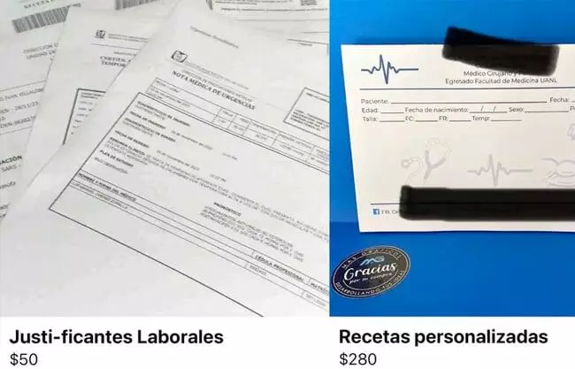 En un ejercicio de búsqueda que realizó la plataforma MILENIO- Multimedios, se encontró que en el apartado de ventas de la red social Facebook se pueden encontrar desde recetas, justificantes, incapacidades, resultados de exámenes y hasta pruebas de laboratorio, papeles presuntamente falsos.