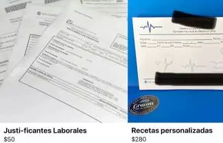 Por otra parte, existen ofertas de recetas médicas o incapacidades “actualizadas y al instante”, sin precisarse si son documentos editados o si se emiten como un documento oficial.