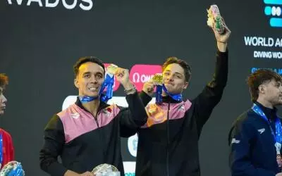 ¡Oro para México! Juan Celaya y Osmar Olvera se bañaron en oro en el Mundial de Clavados Guadalajara 2025.