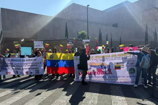 Decenas de personas se congregaron en las inmediaciones de la Embajada de Estados Unidos en México para manifestarse contra la operación militar en Venezuela.
