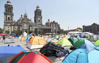 Desde temprano, los docentes disidentes de Chiapas, Guerrero, Zacatecas, Michoacán y Oaxaca empezaron a llegar al primer cuadro de la capital para instalar su plantón.