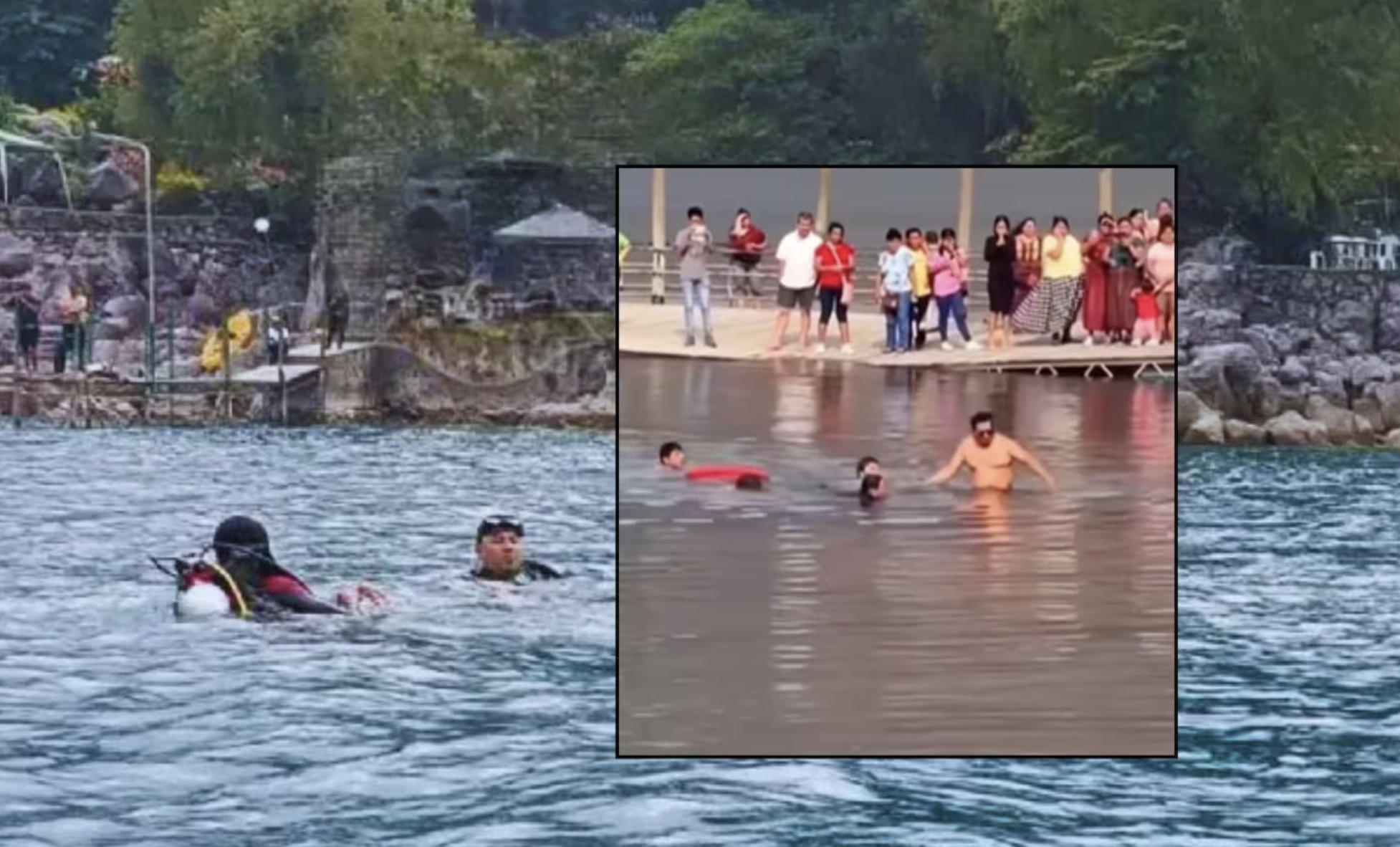 El accidente quedó registrado en varios videos, grabado por un asistente. Las imágenes muestran el caos cuando varias personas comenzaron a ahogarse. El hombre se hundió en la zona profunda del lago, mientras otros observaban desde la orilla.